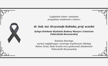 Rodzinie Zmarłego wyrazy głębokiego współczucia składają Rektor, Senat oraz Społeczność Akademicka Politechniki Rzeszowskiej