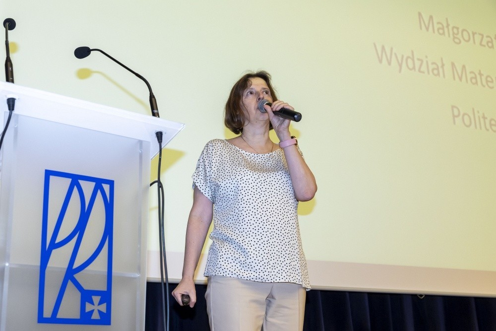 Uczestnicy z zainteresowaniem wysłuchali również wykładu inauguracyjnego „W krainie szyfrów, czyli krótka historia kryptologii”, który wygłosiła prodziekan ds. kształcenia dr Małgorzata Wołowiec-Musiał.
