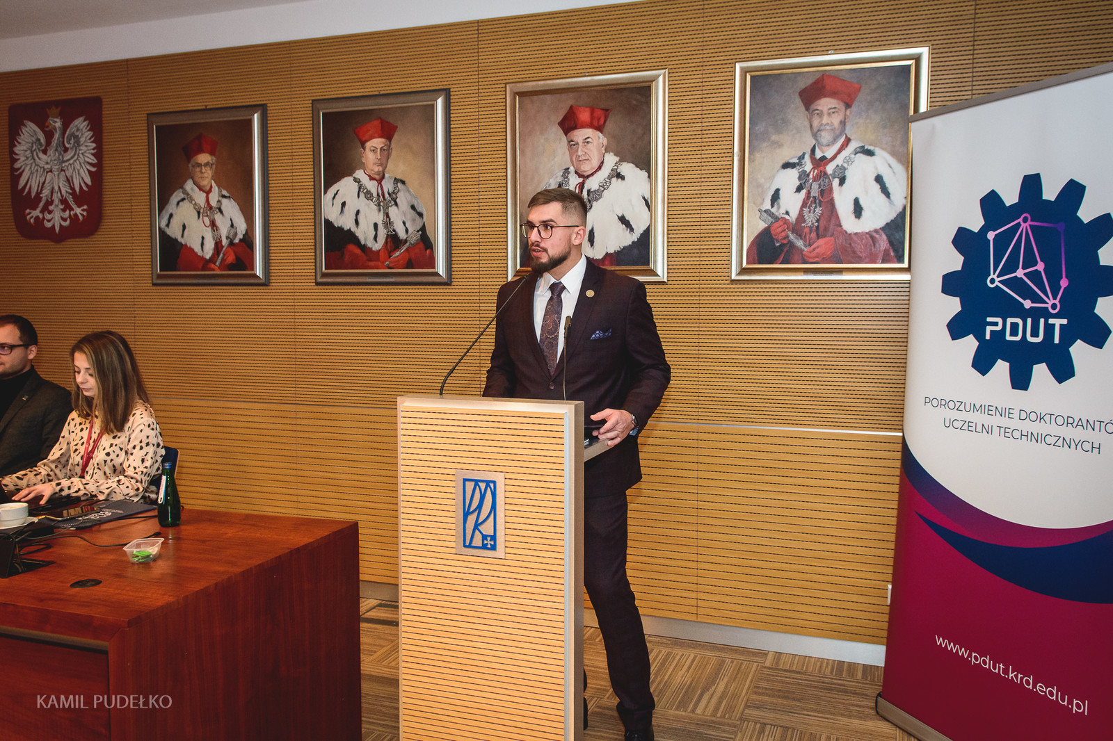 Podczas grudniowego zjazdu Porozumienia Doktorantów Uczelni Technicznych, który odbył się na naszej uczelni, został powołany nowy zarząd Porozumienia. Funkcję przewodniczącego powierzono mgr. inż. Kamilowi Kucharskiemu, doktorantowi Szkoły Doktorskiej Politechniki Rzeszowskiej, pracownikowi Wydziałowego Laboratorium Badań Kół Zębatych na Wydziale Budowy Maszyn i Lotnictwa.