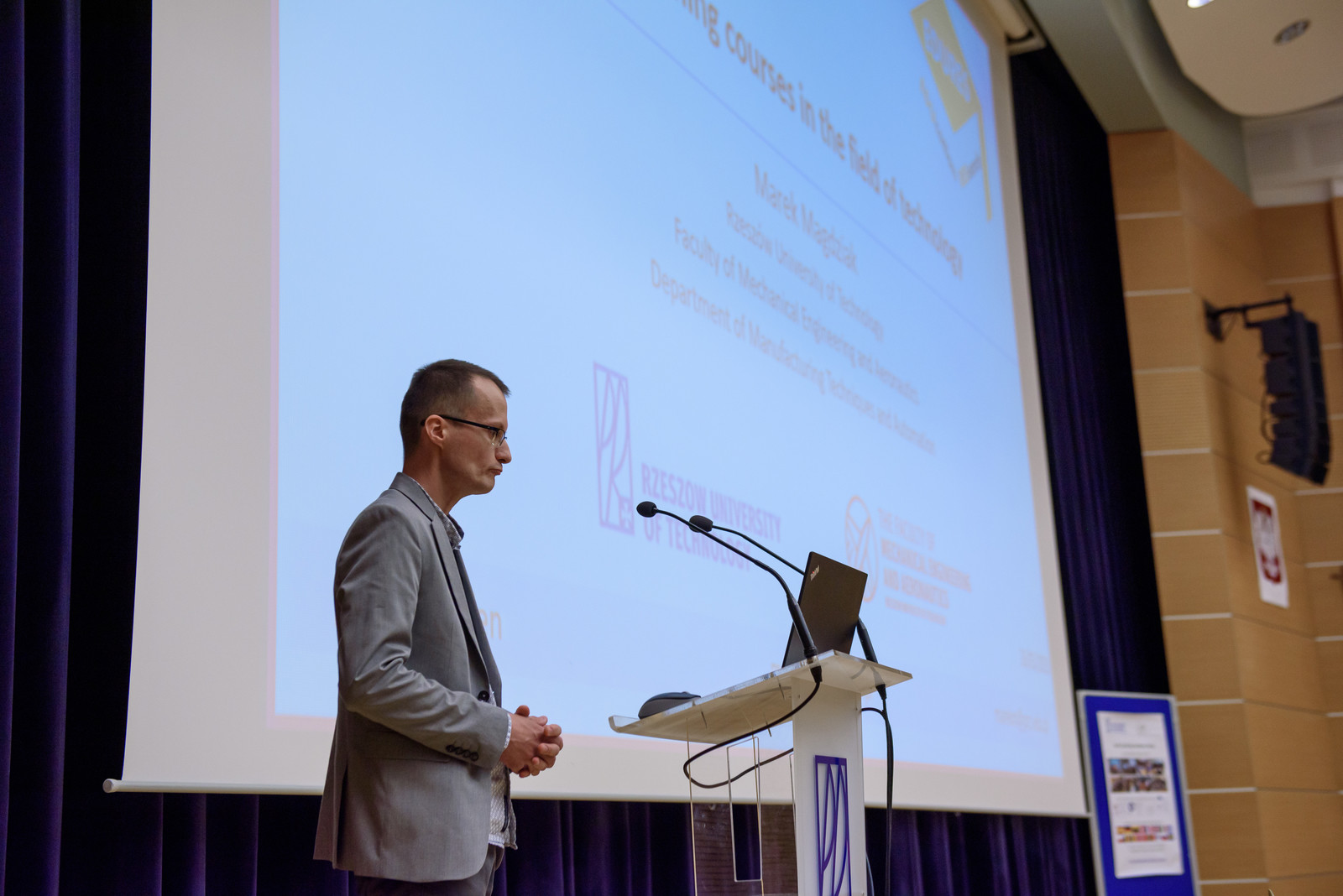 Kolejne cztery prezentacje powiązane z projektem EDURES zostały przedstawione przez przedstawicieli Politechniki Rzeszowskiej. Najpierw dr inż. Roman Wdowik omówił znaczenie wykorzystania wyników badań naukowych w procesie przygotowania pracowników dla przemysłu, koncepcję stojącą u podstaw projektu oraz podsumował rezultaty projektu. Dr inż. Przemysław Podulka przedstawił możliwości uwzględnienia wyników badań naukowych w procesie kształcenia studentów. Dr inż. Paweł Litwin omówił z kolei, jak można wzmacniać współpracę naukową pomiędzy pracownikami uczelni, studentami i pracownikami przemysłu. Na koniec dr inż. Marek Magdziak podsumował otwarte kursy e-learningowe z zakresu technologii.